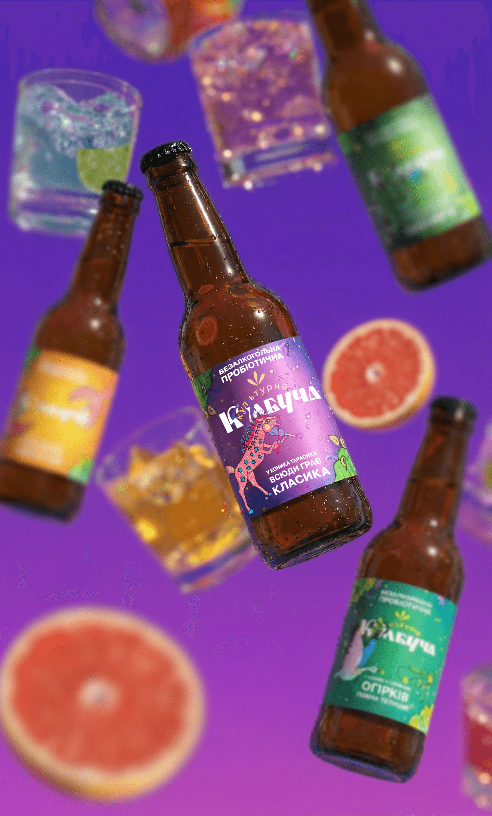 Потрібно було розробити айдентику та повний візуальний концепт для бренду «Культурна Комбуча» — так, щоб продукт вирізнявся на полиці, легко впізнавався в комунікації та передавав свій характер через пакування, графіку й digital-подачу.