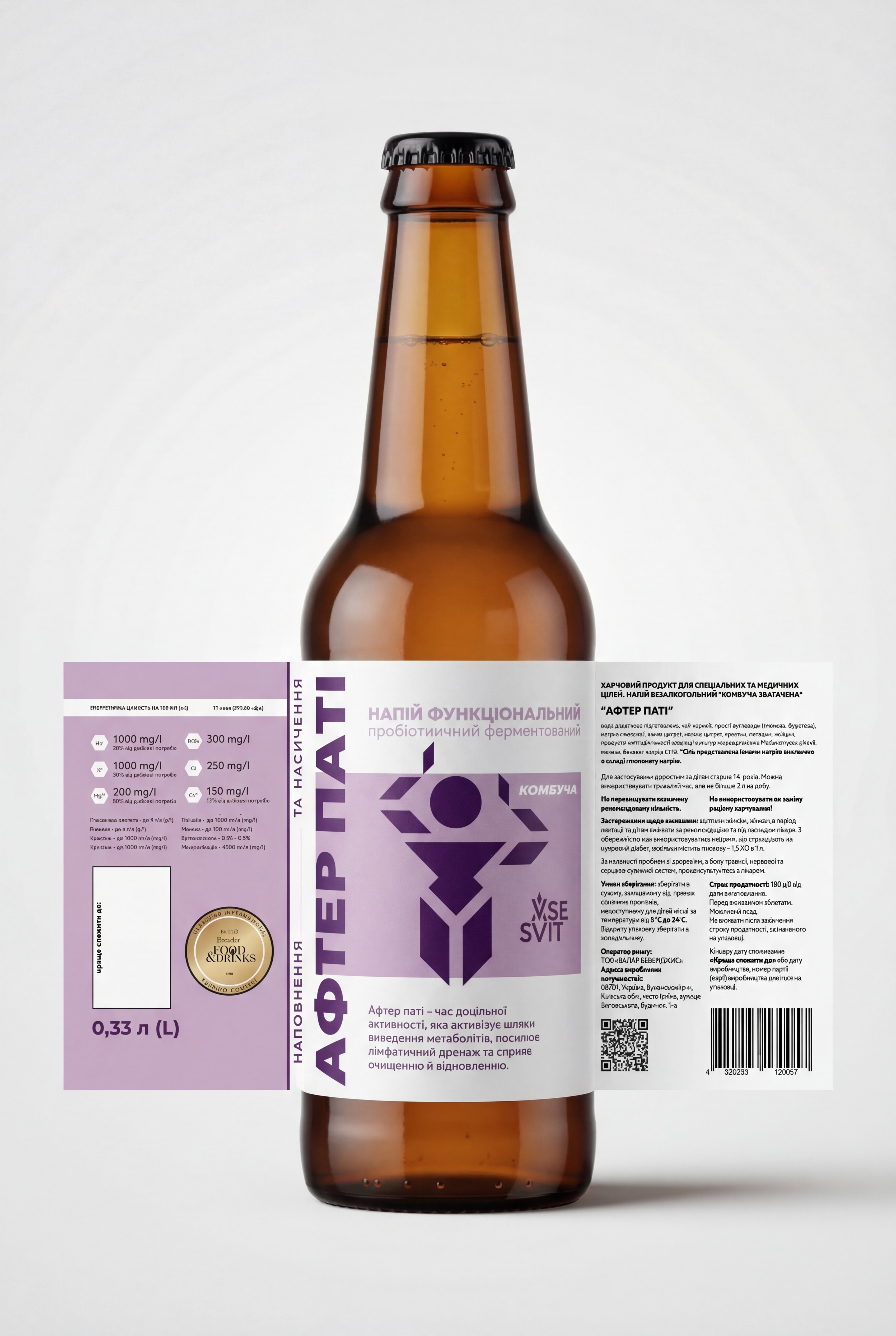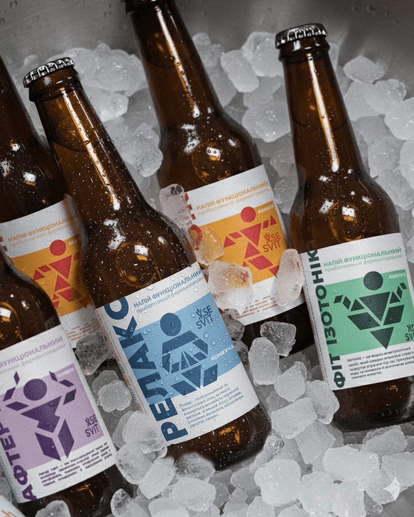 У результаті бренд отримав цілісний фундамент для комунікації: від назви й позиціонування до повної візуальної подачі продукту. Це дозволило оформити VSESVIT як сучасний бренд у категорії функціональних напоїв — з чіткою логікою, зрозумілою продуктовою архітектурою та візуальною системою, яка працює і в етикетці, і на сайті, і в подальших маркетингових матеріалах